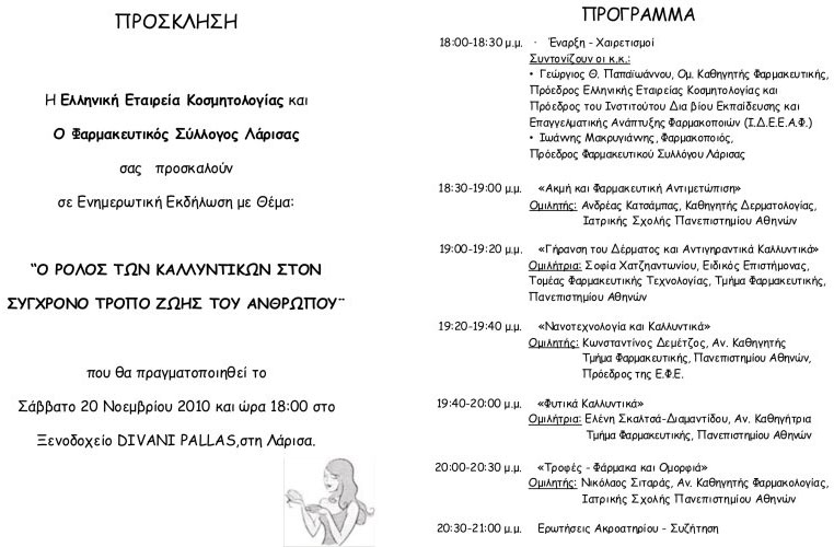 στην εκδήλωση που οργανώνουν τα Δερματολογικά Εργαστήρια Avène και το Κέντρο Εκπαίδευσης Carla της Pierre Fabre, την Τρίτη 29 Μαΐου 2012 στις 18.30 στο Ξενοδοχείο Larissa Imperial,